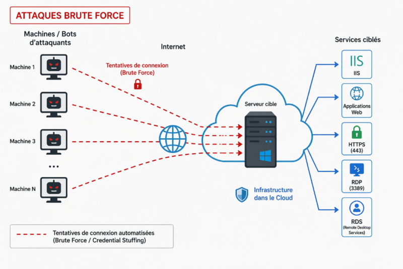 In this article, we will see how to detect, using PowerShell scripts, brute force attacks on Windows servers exposed to the Internet. By analyzing logs, it will be possible to identify malicious IP addresses regardless of the targeted service (RDP, IIS, RDS, or other services). We will also discuss blocking options when suspicious activity is detected.