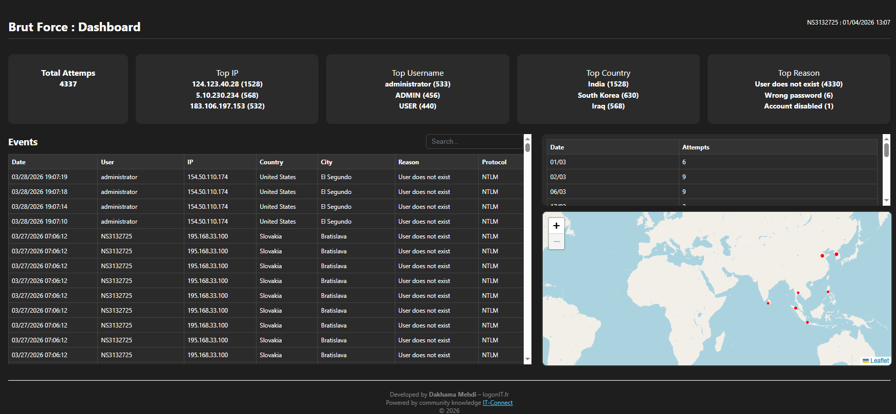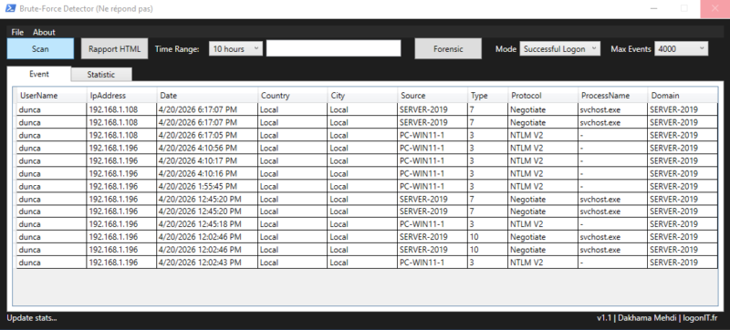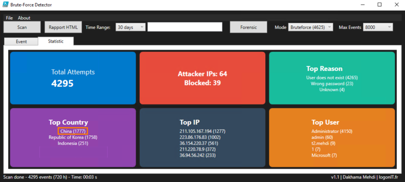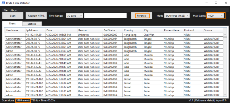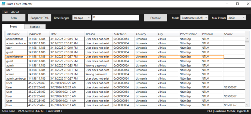 We have seen that with native solutions, especially PowerShell, it is possible to quickly gain visibility into the risks affecting a server and identify the main weaknesses. The BruteForce Detector tool fits into this approach by providing a clear and actionable view of events.