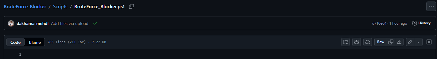 Place the script in the BruteForceBlocker folder (for example under: C:\Temp). This path can be changed later. Then open the script in an editor such as PowerShell ISE.