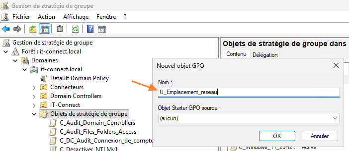 Name this new policy, for example: . Confirm by clicking OK.U_Emplacement_reseau