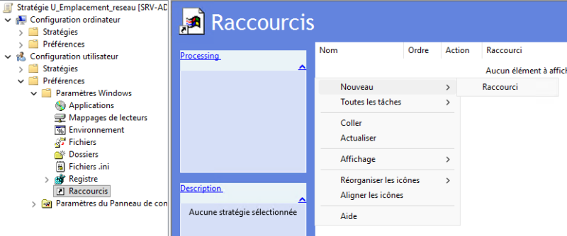 Once the GPO has been created and linked, it must be configured through Group Policy Preferences. Right-click your new GPO U_Emplacement_reseau and click "Edit."